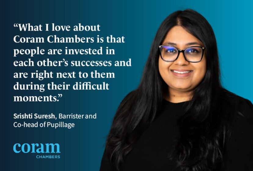 Every pupil is supported not only by supervisors, but also by a ‘buddy’ – a junior member who has recently completed pupillage. This ensures both formal and informal support is always available. As Srishti Suresh, Barrister and Co-head of Pupillage, has said, “What I love about Coram Chambers is that people are invested in each other’s successes and are right next to them during their difficult moments.”