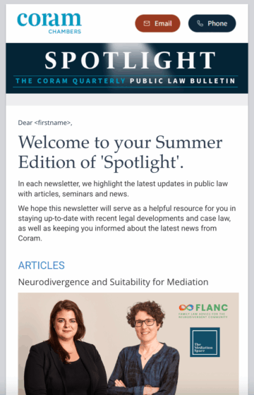 Spotlight – Summer Edition Public Law Newsletter August 2025: ‘from the bar’ Coram newsletter July 2025: ‘from the bar’ Coram newsletter